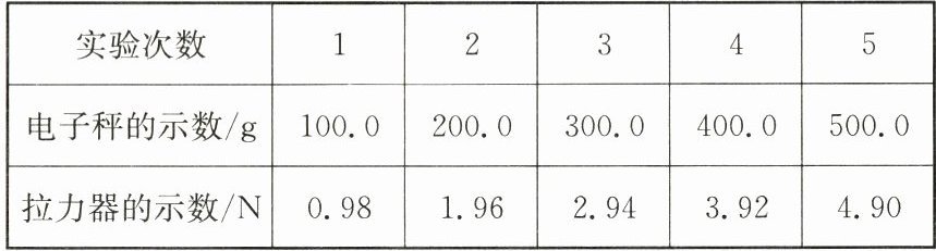 (2)分析表中数据可得:物体所受重力的大小与它的质量成