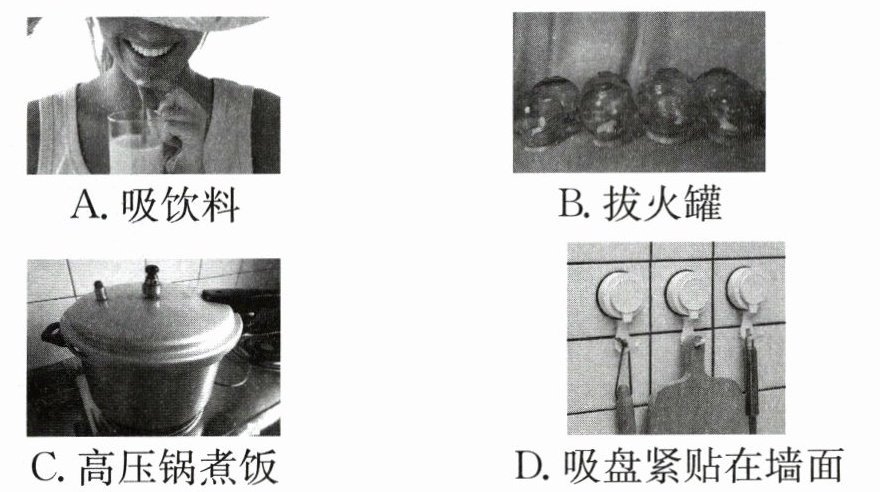 2. 下列生活中的现象均与大气压有关,其中一个利用的原理与另外三个不同的是(