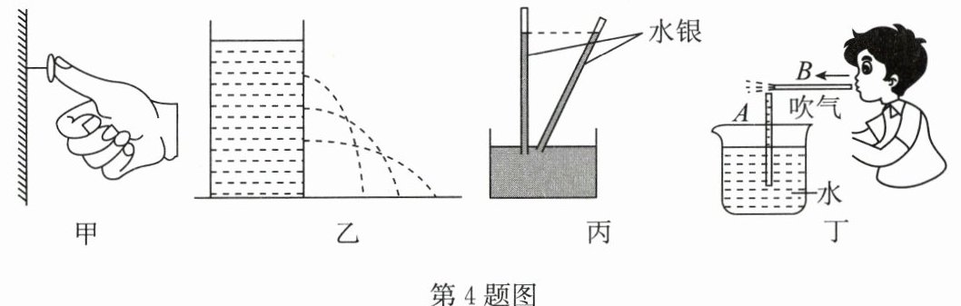 D.丁:吹气时 A 管中的水面上升,说明空气流速越大的位置压强越大