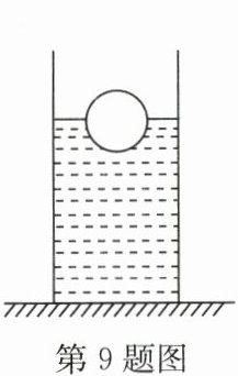 9. 在学校物理文化周活动中,小华演示了物体漂浮时的情景,如图所示,将底面为正方形的柱形容器放在水平桌面上,容器内装有一定量的水,水面漂浮着一个直径为 10cm 的球,已知容器的质量为 2kg,则容器底部对桌面的压强最接近(