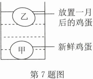 7. (2024·南通)将新鲜度不同的甲、乙两鸡蛋放入水中,静止时的状态如图所示,下列说法正确的是(