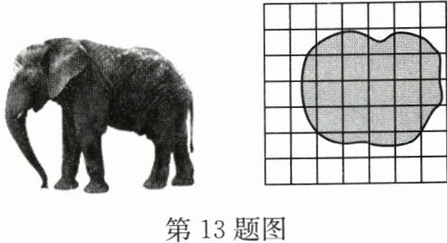 13. 一头质量为 $ 5×10^3kg $ 的大象站在水平地面上时留下的脚印如图所示,假设大象每个脚印的面积相等,图中每个小方格的面积为 $ 25cm^2 $(数方格数时,不足一格的按半格计). 大象的重力是