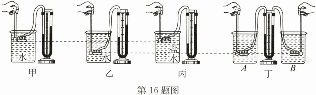 (填“上”或“下”)移,U 形管两侧液面会再次相平.答案:16. (1) 差 (2) 转换法 (3) 甲 乙 (4) 密度 (5) 水 上