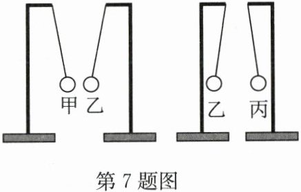 7. 甲、乙、丙三个轻质小球用绝缘细线悬挂,相互作用情况如图所示。此现象能说明(