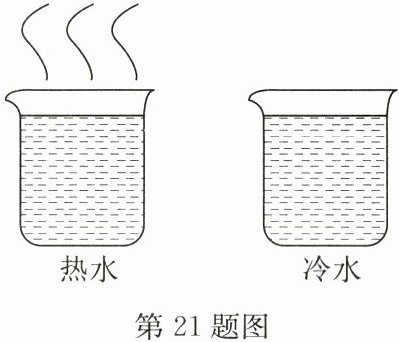 。答案:21. (1)热水 越剧烈 (2)控制变量法 (3)不能 用酒精灯对冷水加热,会引起水的对流,无法说明水的颜色变化是由于水分子无规则运动所引起的