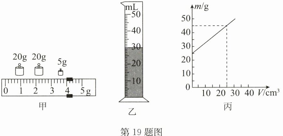 (3) 他们对测量方法进行修正后,测出了几组实验数据,并根据测量结果作出了 $ m - V $ 图像,如图丙所示. 由图像可知该液体的密度为