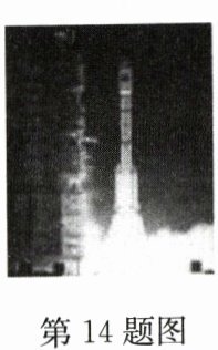 14. 如图所示,火箭点火后向下喷出高温、高压的燃气,燃气推动火箭腾空而起,说明物体间力的作用是