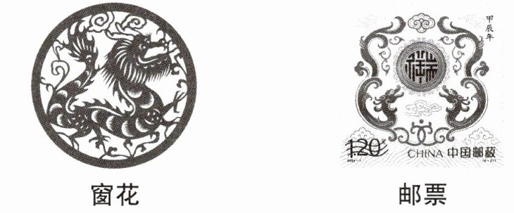 9. 示例:窗花中的龙威猛雄壮,昂首阔步,充满活力,寓意喜庆吉祥、蒸蒸日上。邮票中,两条龙如祥云般飞腾,共同托举包含“祥瑞”二字的圆球,寓意着国泰民安、和谐幸福。龙在中国传统文化中占据着重要的地位,它以其丰富的内涵和深远的象征意义,成为中华民族的精神图腾。