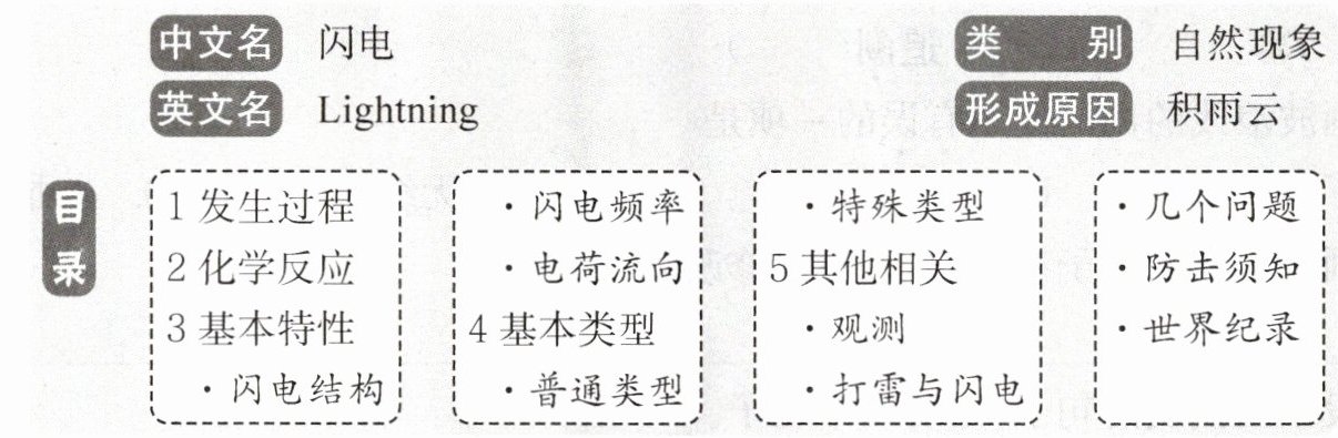 9. 亮点原创 下面是百度百科中“闪电”词条的目录。你认为其中有没有适合本文的章节?如果有,请说说本文适合放在哪个章节下;如果没有,你建议再增加一个什么章节?请阐述理由。