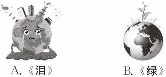4. 示例一:选择 A。这张图片以《泪》为标题,显示了地球被污染的场景。上面是高大的烟囱排放浓烟,下面是不断排出的污水,地球表面被污染,地球流下了泪水。这张图片具有强烈的视觉冲击力,能够直观地表现出环境污染与不控制碳排放的危害性,引起人们的警觉和反思,适合用于倡导低碳生活的宣传册封面。 示例二:选择 B。这张图片以《绿》为标题,画面中,地球上方是茁壮成长的嫩芽,地球则为嫩芽的生长提供养分。这张图片给人以生机勃勃和积极向上的感觉,强调了保护环境和采取低碳行动对恢复地球生态的重要性。它能够正面激发读者对美好环境的向往,从而鼓励人们积极参与低碳生活。