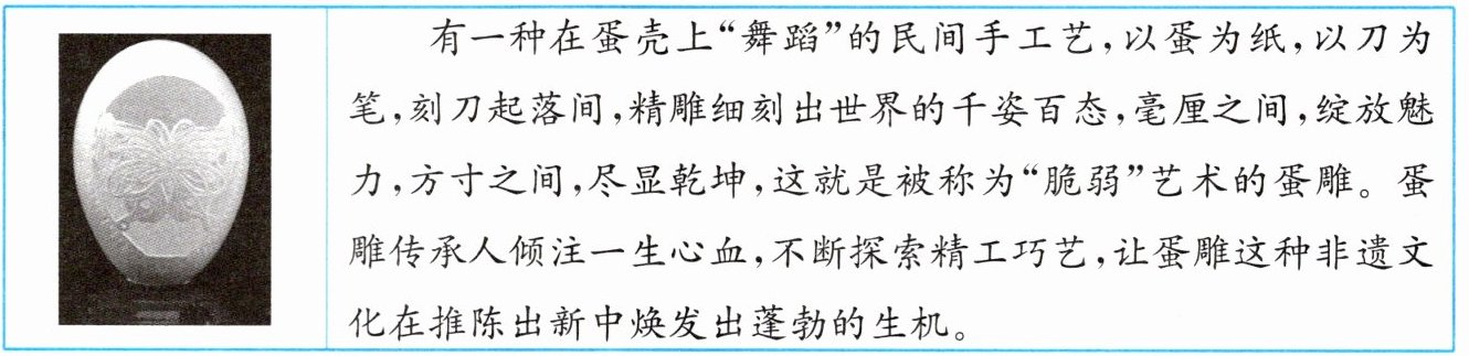 (1)新素养 思维能力 阅读上面的图文,用下定义的方式向同学们介绍“蛋雕艺术”。