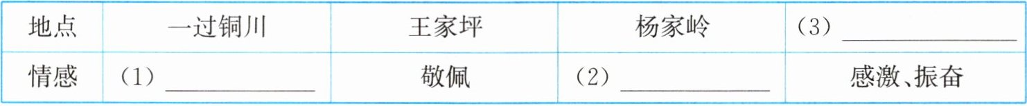 7. 阅读全文,补全地点,梳理“我”的情感脉络。