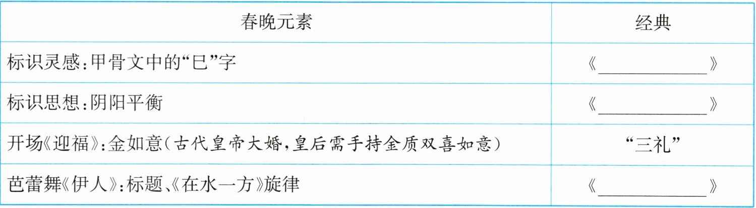 (2) 小语将 2025 年春晚元素与《经典常谈》关联,制作了如下表格。请你补充完整。