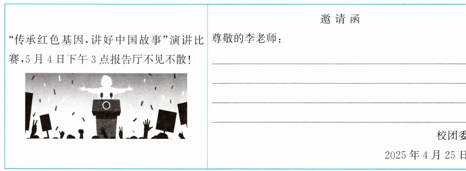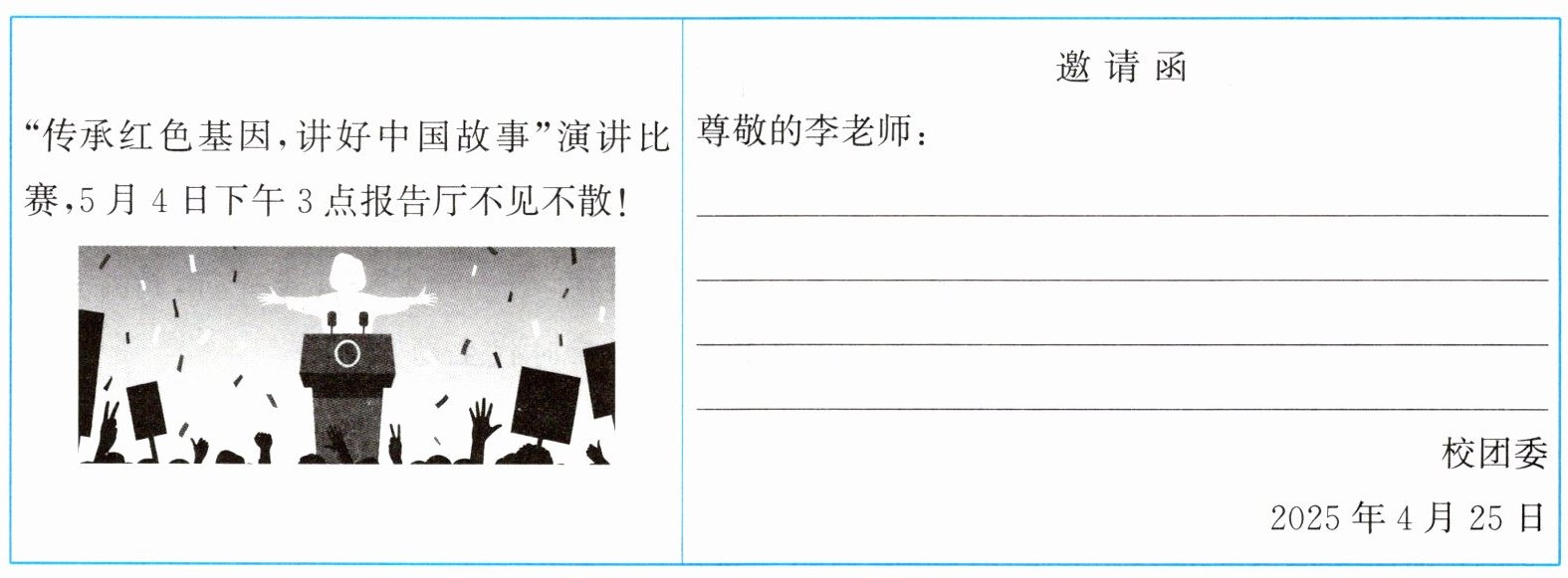 (2)新素养 文化自信 学校准备邀请李老师担任比赛评委,请你根据海报信息,补全下面的邀请函。