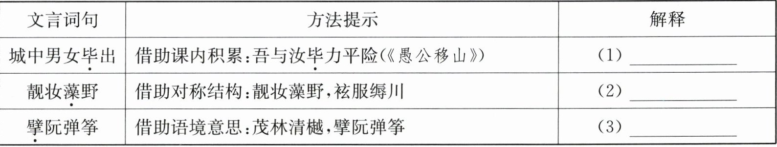 7. 借助表格中的方法提示,解释下列句子中加点的词。(3分)