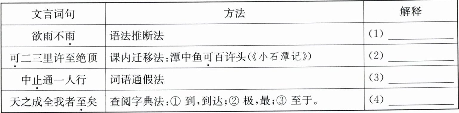 5. 新趋势方法借鉴 参考表格提示的方法,解释下列句子中加点的词。(4 分)