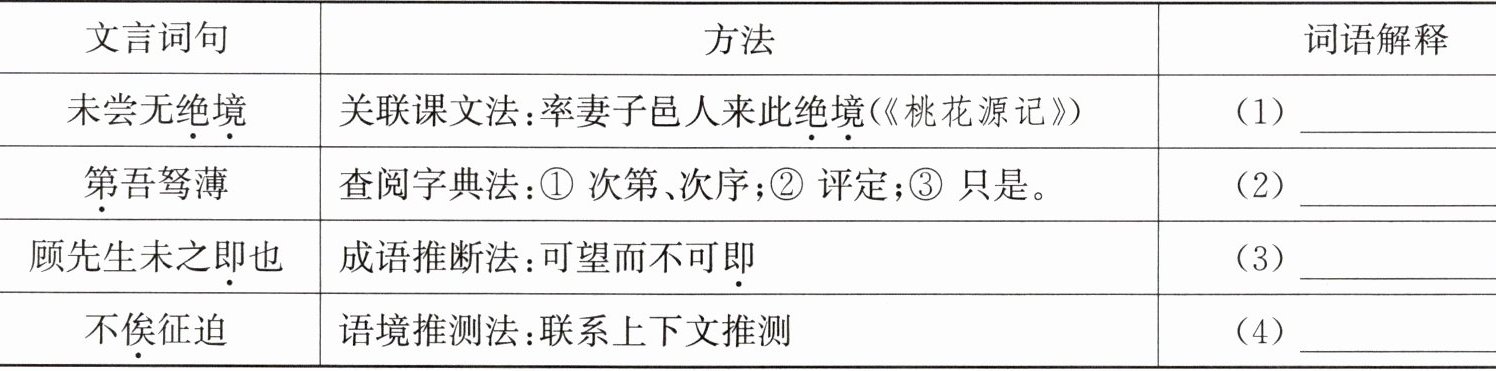 11. 新趋势 方法借鉴 小语梳理了关于文言字词的学习方法,请根据提示,完成表格。