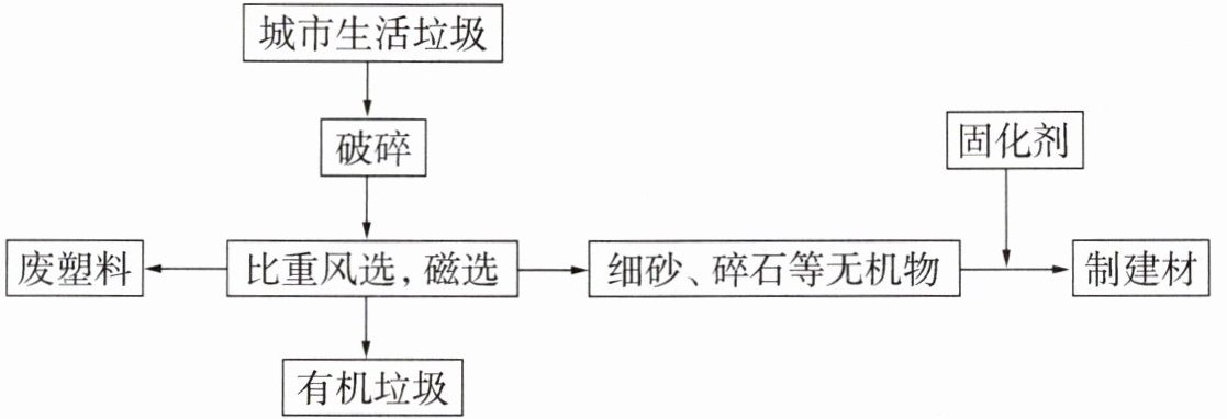 ,这样就能使其变成崭新的建筑材料。答案:5. (1)低排放、低能耗、低污染 (2)示例:①出行时,尽量选择绿色交通工具 ②减少使用一次性用品,比如一次性碗筷、杯具等 (3)破碎 废塑料、有机垃圾和细砂、碎石等无机物 细砂、碎石等无机物 加入固化剂