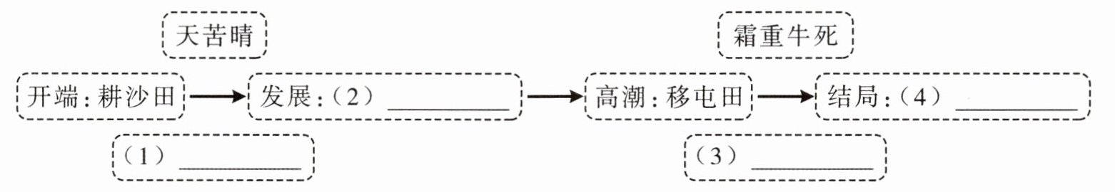 6. 新趋势 思维导图 叙事诗是诗歌题材的一种,常常通过写人叙事来传达思想感情。请你梳理“屯田之事”,补充下面的思维导图。