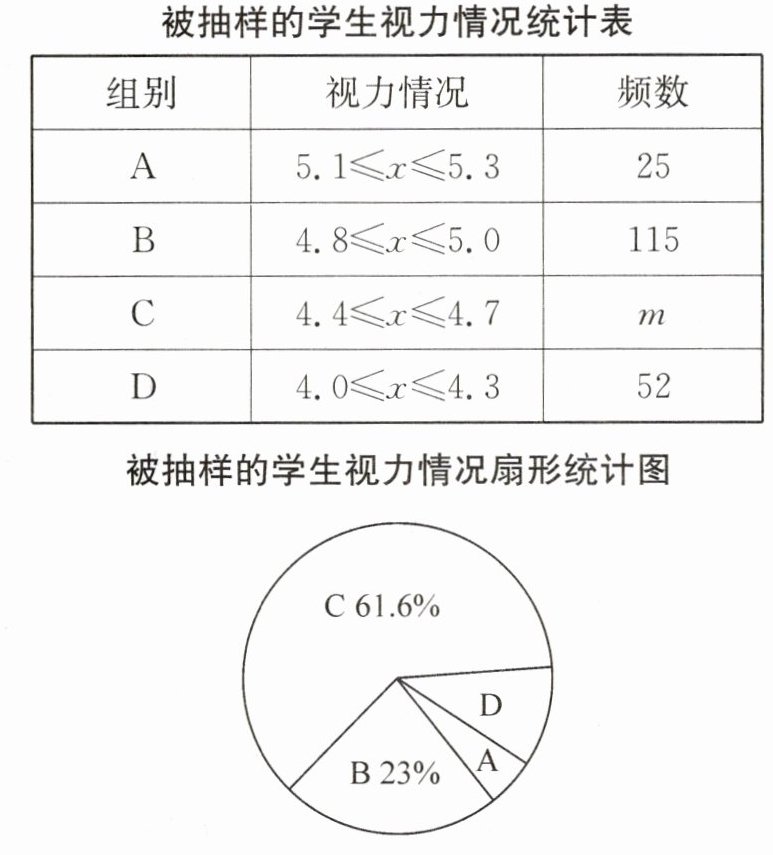 答案:12.(1)由题图,得被抽取的学生有115÷23%=500(名),则m=500×61.6%=308.