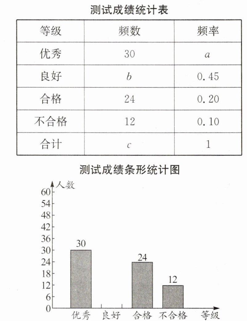(2)由(1),得b=54,则抽取的学生中成绩为“良好”的有54名.补全条形统计图如图: