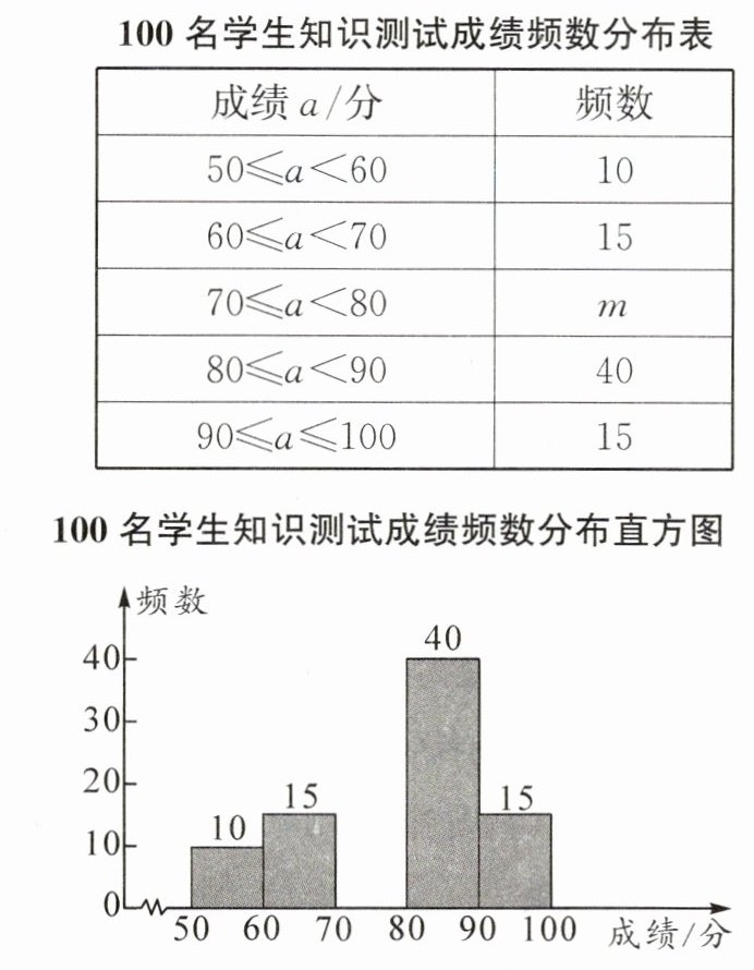 8. 某学校开展了防火知识的宣传活动,为了解这次宣传活动的效果,学校从全校 1 200 名学生中随机抽取 100 名学生进行知识测试(满分 100 分,得分均为整数),并根据这 100 名学生的测试成绩,制作了如下不完整的统计图表.根据以上信息,解答下列问题:
