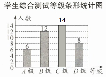 4. (2024·四川内江)某校为了解学生对“生命、生态与安全”课程的学习掌握情况,从八年级学生中随机抽取了部分学生进行综合测试,测试结果分为 A 级、B 级、C 级、D 级四个等级,并将测试结果绘制成如图所示的两幅不完整的统计图. 根据统计图中的信息,解答下列问题:
