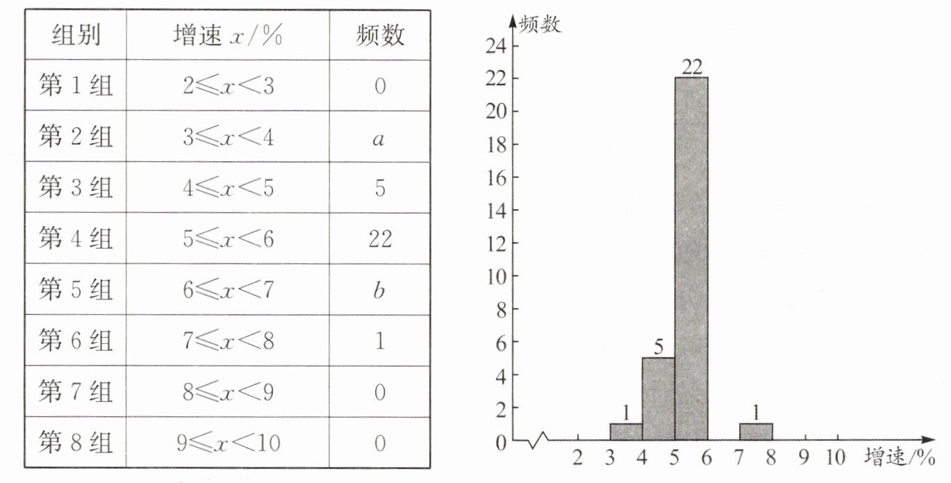 亮点原创·2025年上半年我国经济稳步恢复,全国GDP同比增速(“同比增速”指和上一年同期相比较的增长率)为5.3%.以下是以全国31省份2025年上半年GDP增速作为调查对象,绘制出的频数分布表和频数分布直方图,请结合图表,解答下列问题: