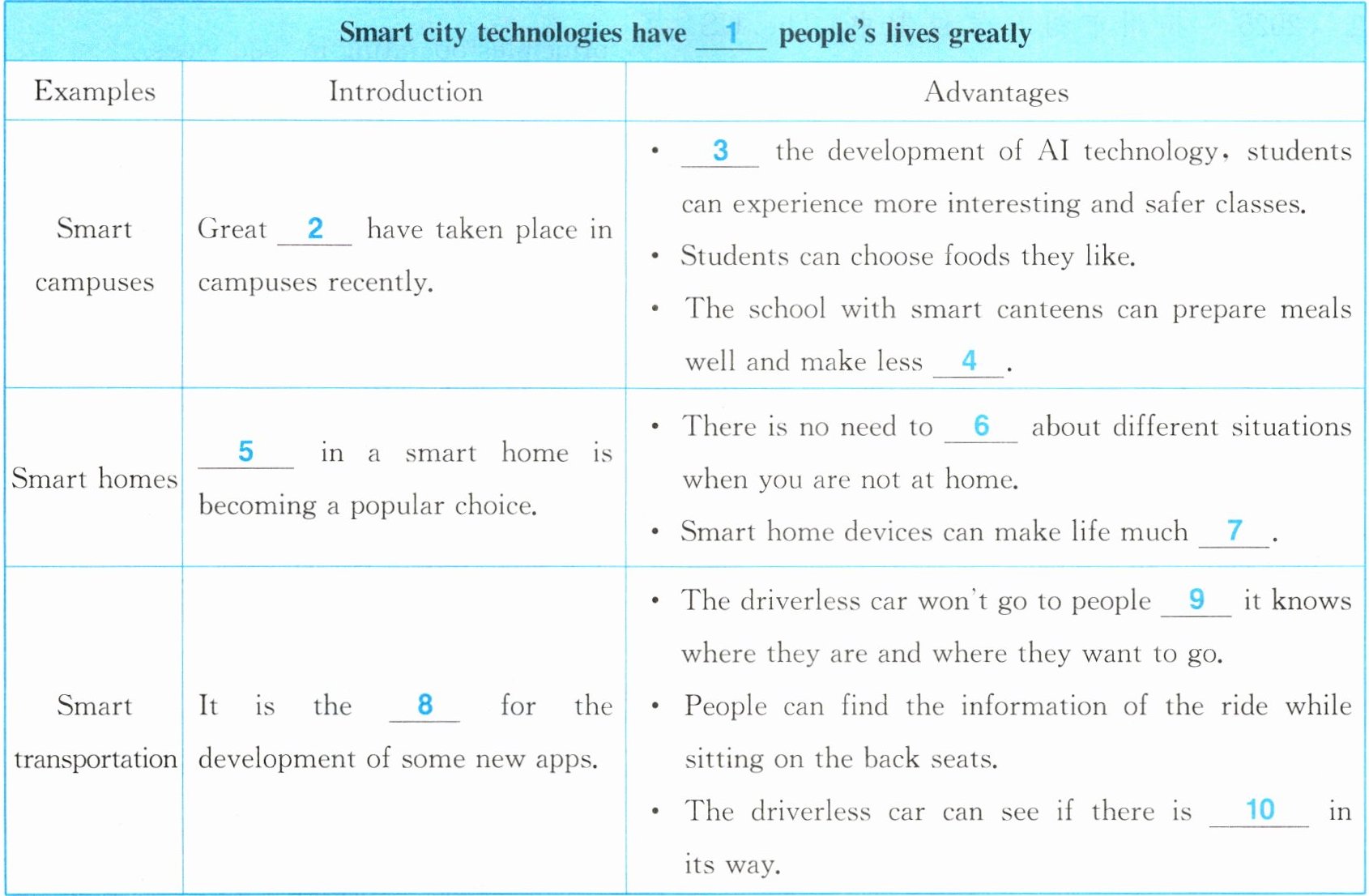 答案:五 1. improved 2. changes 3. With 4. waste 5. Living 6. worry 7. easier 8. reason 9. unless 10. something