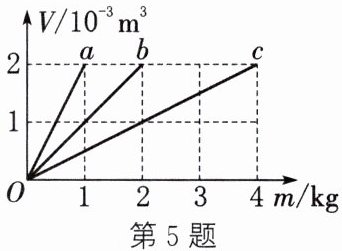 5. (易错题)(2025·南京建邺校级段考)分别由不同物质$a$、$b$、$c$组成的三个实心体,它们的体积和质量的关系如图所示,正确的是(