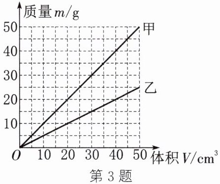 3. 在探究甲、乙两种物质的“质量跟体积关系”时所作出的图像如图所示。下列分析中正确的是(