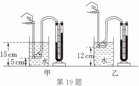 19. 如图所示,探究液体内部压强与深度和液体密度的关系。