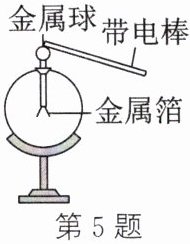 5. (2024·西安碑林校级期中)如图,用带电棒接触原来不带电的验电器的金属球,发现验电器的金属箔张开,下列判断正确的是(