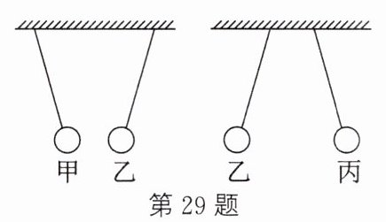 29. (2024·广州天河校级三模)甲、乙、丙三个轻质小球情况如图,已知乙带负电,丙经过摩擦