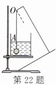 22. (2025·苏州吴江一模)如图所示实验中,为了判断重力的方向,将小球放于一杯水后,以水面作为参考面,缓慢改变支架底座的倾角,总观察到OA与水面