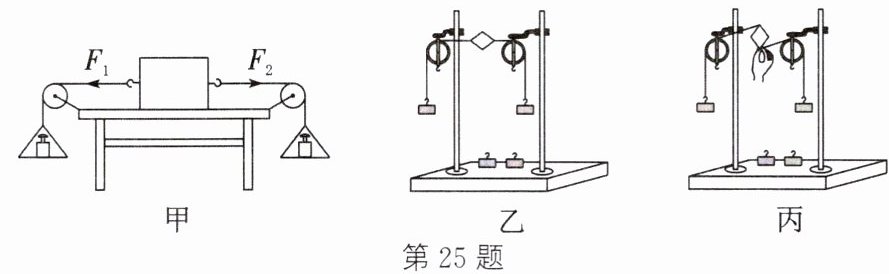 25. (2025·扬州一模)在探究“二力平衡的条件”的实验中,小明同学采用的实验装置如图甲所示。
