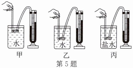 D.若向图甲的杯中加少许盐,保持探头位置和液面高度不变,且图甲、丙中U形管内液面的高度差相同,则说明图甲、丙中盐水密度相同
