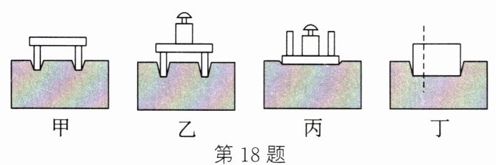 答案:18.(1)凹陷程度 探究液体压强大小与什么因素有关(合理即可) (2)甲、乙 (3)没有控制压力大小相同 不用切肥皂,把肥皂竖放、平放、侧放,改变受力面积,观察海绵的凹陷程度