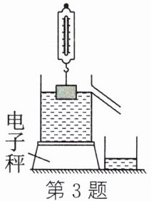 3. 如图所示,水平桌面上放置一个电子秤,电子秤上有一盛水的溢水杯,杯内水面跟溢水口相平。现用弹簧测力计悬挂一个圆柱体铝块,将铝块缓缓地没入水中,直到铝块浸没在水中,整个过程铝块未接触杯底和侧壁。从铝块下表面开始接触水面到上表面刚没入水中的过程中 (