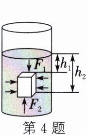 4. 如图所示,有一个重力为 $ G $ 的长方体浸没在液体中,其受到的浮力为 $ F_{\mathrm{浮}} $,液体对长方体向下和向上的压力分别为 $ F_{1} $ 和 $ F_{2} $,下列说法不正确的是 (