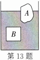 13. (2025·淮安二模)如图所示,水平桌面上盛有适量浓盐水的烧杯中,漂浮着冰块 $ A $,悬浮着物块 $ B $。当冰块 $ A $ 完全熔化后,下列分析正确的是 (