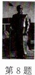 8. (2025·常州金坛期中)如图所示的名人铜像,铜像高4.6m,质量为5t。现有和铜像同种材料等比例缩小的模型,高度为46cm,则铜像模型的质量为