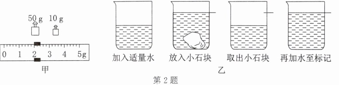 (2) 用天平测量小石块的质量,天平平衡时右盘中的砝码和标尺上的游码位置如图甲所示,则小石块的质量为