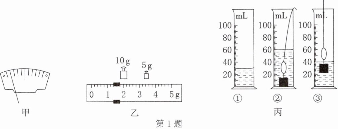 (1) 将托盘天平放在水平桌面上,将游码移至标尺左端的零刻度线处,发现指针静止时如图甲所示,则应将平衡螺母向