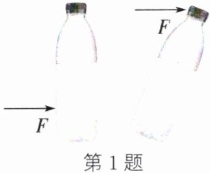 1. (2024·徐州沛县校级期中)如图所示,小华用矿泉水瓶做实验:他用水平力轻轻推动底部时,瓶子沿桌面平稳地移动;当用水平力轻推瓶盖时,瓶子翻了。他验证的是力的作用效果 (