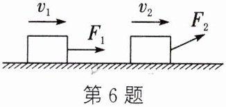 6. (2025·泰州姜堰二模)如图所示,两块完全相同的长方体物块,分别在拉力F₁、F₂的作用下,沿同一个水平地面以不同的速度做匀速直线运动,已知F₁ < F₂,v₁ < v₂,则两种情况下物块所受摩擦力f₁和f₂的大小关系为(