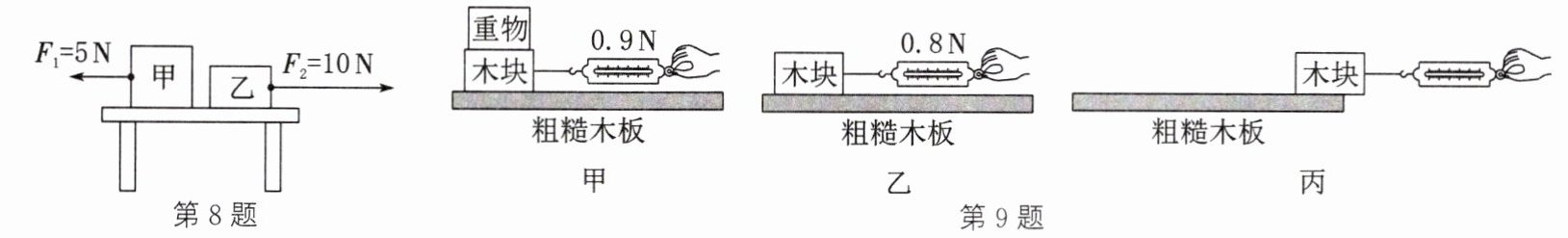 9. (2025·无锡惠山校级二模)如图甲、乙是“探究影响滑动摩擦力大小的因素”实验,由此可得实验结论:当接触面的粗糙程度相同时,