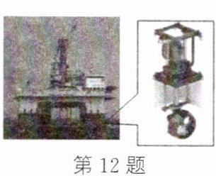 12. (2024·无锡江阴期中)海洋钻井平台水面下的支撑立柱经常受到洋流的冲击。为增强平台的稳定性,我国某钻井平台采用了世界先进的动力定位系统:在立柱上安装可以按需要改变朝向的螺旋桨(如图),螺旋桨高速排水,螺旋桨排水的方向应该是