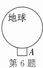 答案:第6题 一圆,圆内左侧标注地球,圆内下方一点$A$,$A$受竖直向上的力,力的符号为$G$