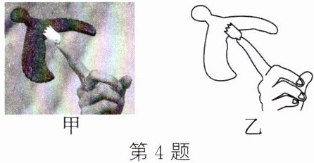 答案:第4题 一手拿一重物,重物受竖直向下的重力$G$
